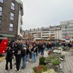 Na het serene herdenkingsmoment heeft de stoet zich opnieuw op gang getrokken. Iedereen zet nu koers richting Cloë voor de start van de officiële zitting.